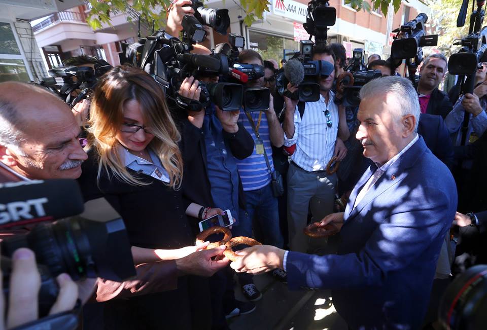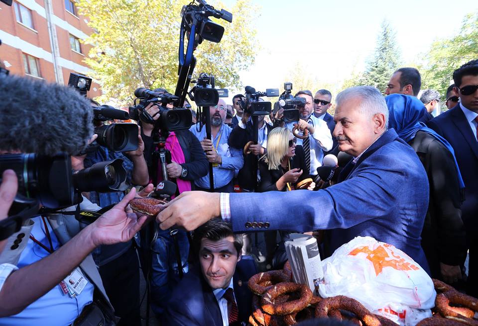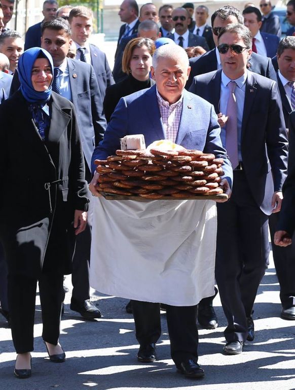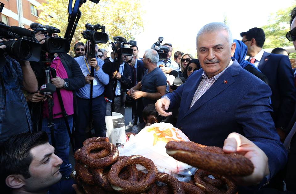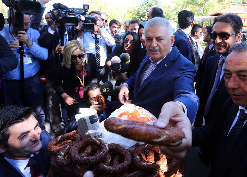 قام رئيس الوزراء التركي بن على يلدريم بشراء “كعك” السميت من احد الباعة المتجولين، ومن ثم توزيع على الاهالى المتواجدين في المكان والصحفيين