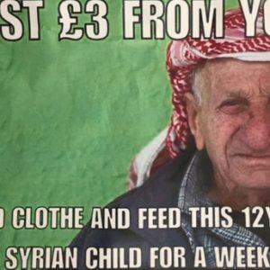 وأثار الملصق المعلق على جدار مطبخ في البرلمان، استياء النائبة عن حزب العمال “تشي أونورا”، فهو يحوي صورة للاجئ مسن كتب عليها عبارة “يمكن إطعام وإلباس هذا الطفل السوري ذو الـ 12 عاماً بثلاث جنيهات استرلينية فقط”.
