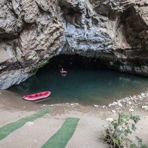 ومع ركوب القوارب وبدء عملية التجديف فوق المياه الفيروزية، تبدأ رحلة السياح الشيقة في المغارة الواقعة أسفل جبل يصل ارتفاعه إلى 650 متراً.