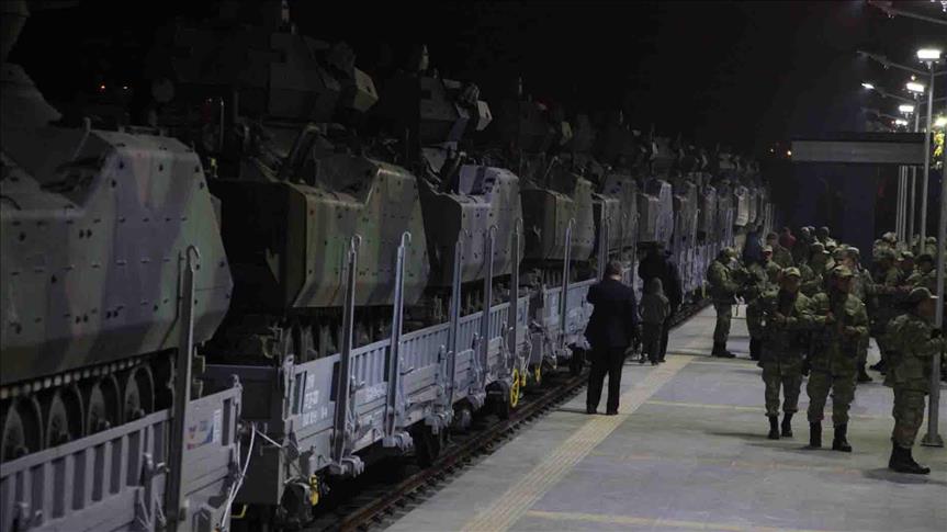 وأفاد وسائل اعلام تركية نقلًا عن مصادر عسكرية، أنه تم إرسال العديد من ناقلات الجنود المدرعة، محملة على 35 عربة قطار.