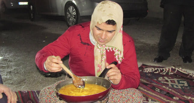 التقطت عدسة “الأناضول” صور أصدقاء سيفري قايا وهم يلبسونه ملابس نسائية، وينظمون له الاختبارات (المكائد) الواجب عليه اجتيازها كي يظفر بعروسته.