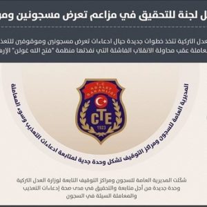 شكّلت وزارة العدل التركية، وحدةً جديدة للتحقيق في ادعاءات ومزاعم بشأن تعرض موقوفين ومحبوسين بالسجون التركية على خلفية محاولة الانقلاب الأخيرة لـ”للتعذيب وسوء المعاملة”.