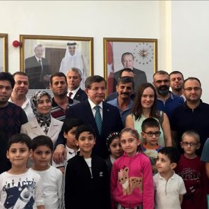 ورافق داود أوغلو، خلال الزيارة عقيلته سارة، والسفير التركي في الدوحة أحمد دمير اوك، واستقبلهم مدير المدرسة التركية محمد كارا طوسون.