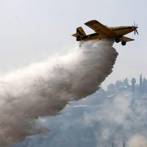 Aerial firefighters work to put out a fire that is spreading in the woods around Jerusalem on May 26, 2016 / AFP / AHMAD GHARABLI (Photo credit should read AHMAD GHARABLI/AFP/Getty Images)