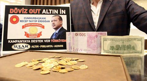 بموازاة تدابير متعددة تتخذها حكومة بن علي يلدريم، لوقف فقدان الليرة مزيدًا من قيمتها، دعا الرئيس أردوغان، في الرابع من ديسمبر الجاري، المؤسسات الحكومية والمواطنين إلى تحويل ما بحوزتهم من عملات أجنبية إلى الليرة أو الذهب؛ لتعزيز قوة اقتصاد بلدهم.