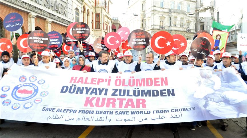 جاء ذلك في كلمة ألقاها يالجين خلال مظاهرة نظمتها نقابته في إسطنبول، تنديدا بالهجمات التي تستهدف المدنيين في حلب، وذلك بمناسبة اليوم العالمي لحقوق الإنسان، الذي يوافق العاشر من ديسمبر/ كانون أول من كل عام.