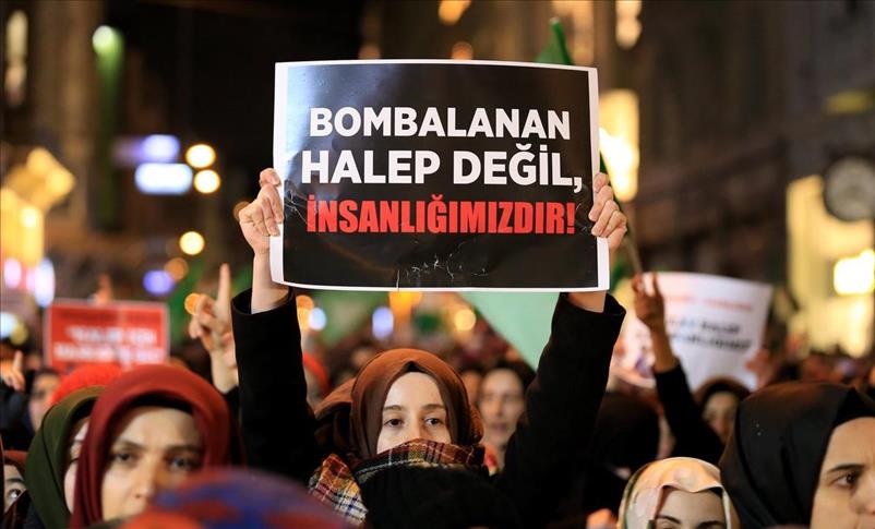 وفي سياق متصل نظم أعضاء وقف شباب تركيا، والكادر الشبابي لهيئة الإغاثة الإنسانية (İHH)، وقفة احتجاجة أمام القنصلية الإيرانية في إسطنبول، تنديداً بما وصفوه “مشاركة إيران وروسيا في الهجمة على مدينة حلب السورية”.