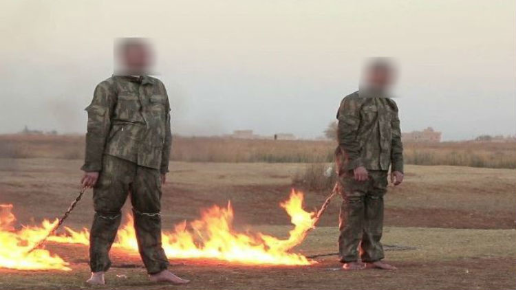 قام تنظيم “داعش” الإرهابي بإعدام الجنديين التركيين سيرتير تاش و فتحي شاهين حرقا حتى الموت بعد أن قام بأسرهما في العام الماضي.