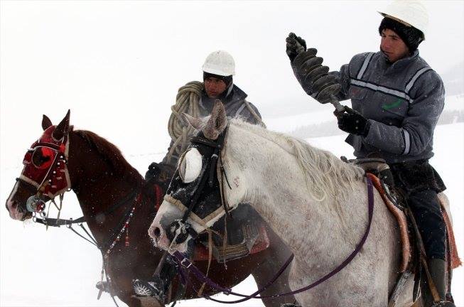 في أرضروم التركية.. إصلاح أعطال الكهرباء على ظهور الخيول