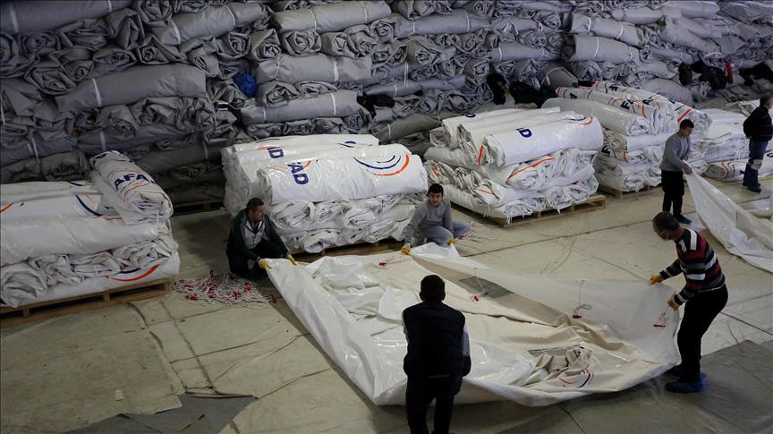 وأوضح ألبير أن المركز يعمل على إنتاج نحو 18 ألفاً و830 خيمة من أجل تغطية احتياجات مخازن رئاسة إدارة الكوارث والطوارئ (آفاد) التابعة لرئاسة الوزراء التركية من خيم الإغاثة.