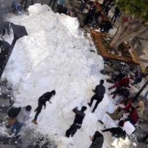 وبعفوية أغلق أصحاب المحلات دكاكينهم، وبدأوا بتقاذف كرات الثلج، وصنع تماثيل منها.