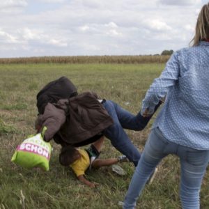 وكانت المصورة الصحفية المجرية، بيترا لازلو، تغطي في الثامن من سبتمبر 2015، مع مجموعة من الإعلاميين، هروب اللاجئين من الشرطة في قضاء “روزكي” على الحدود المجرية–الصربية، حين قامت بركل فتاة صغيرة من اللاجئين، ورجلاً يحمل طفله، الأمر الذي أثار انتقادات واسعة عبر العالم.