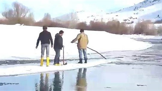 اعتاد صيادو الأسماك في ولاية بايبروت، شمال شرقي تركيا، حتى وقت قريب، على استخدام قطع الجليد الطافية فوق الأنهار والجداول في الشتاء، للانتقال بين ضفافها وبيع ما يصيدونه من السمك.