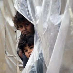 تزيد درجات الحرارة المتدنية والأمطار من صعوبة الحياة في مخيم بلدة “خربة الجوز” بمحافظة إدلب السورية.