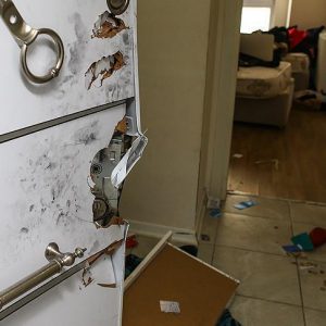 وتجول الصحفيين في الشقة، التي تبعثرت محتوياتها، والتقطوا صورا ومقاطع فيديو لمحتوياتها، حيث أثثّ الصالون بأريكتين، في حين احتوت الغرفتان على سريرين مزدوجين وسريرين مفردين، واحتوى المطبخ على غسالة ملابس.