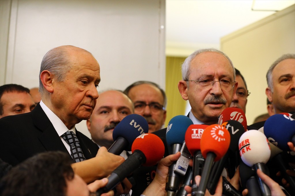 بحث كمال قليجدار أوغلو  رئيس حزب الشعب الجمهوري التركي، أكبر أحزاب المعارضة، اليوم الأربعاء، مع رئيس حزب الحركة القومية المعارض دولت باهجة لي، مسألة تغيير دستور البلاد التي تجري مناقشتها حاليا في البرلمان. وخلال تصريحات أدلى بها عقب اللقاء الذي استمر 45 دقيقة في مكتب باهجة لي داخل البرلمان، قال قليجدار أوغلو إنه أعرب لزعيم الحركة القومية عن مخاوفه من تبعات تغيير الدستور.