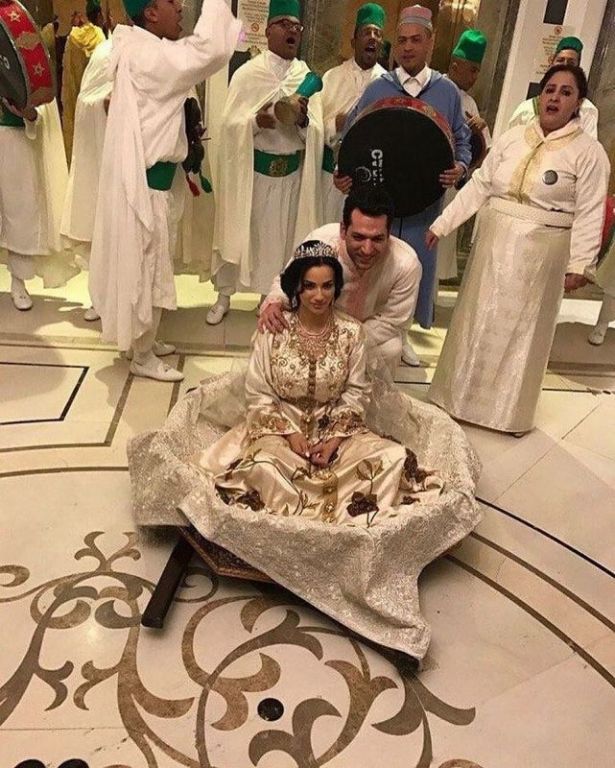 وأقيم الحفل على الطريقة المغربية، حيث ارتدى العروسان أزياء تقليدية مغربية، وقُدمت للمدعوين أطباق من المأكولات والحلويات التي تشتهر بها الأعراس في هذا البلد.