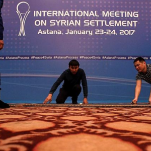وستجري مفاوضات أستانة برعاية الدولتين إلى جانب إيران ومشاركة السفير الأمريكي في أستانة، وذلك في فندق ريكسوس، حيث وضع المنظمون الاحد طاولة واحدة كبيرة مستديرة في قاعة المؤتمرات.