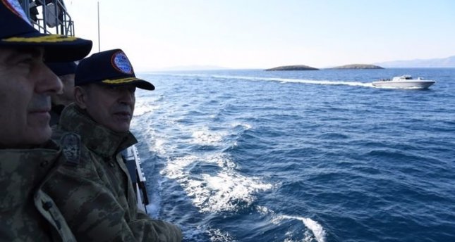 وقال بيان صادر عن رئاسة الأركان إن أكار قام اليوم بتفقد السفن الحربية التركية المتمركزة في بحر إيجة، وقام بجولة مستقلا زورقا هجوميا في منطقة جزيرة قارداق الصخرية التركية (تقع قرب جزر يونانية).