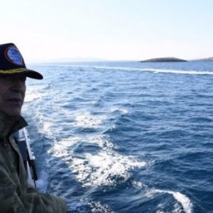 وأوضح أنه “خلال جولة أكار، وصل إلى المنطقة قارب صغير تابع لخفر السواحل اليوناني، وتابع الوضع من مسافة بعيدة، إلا أنه لم تحدث أية إعاقة لجولة رئيس الأركان هناك”.