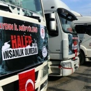 أكد رئيس منظمة الهلال الأحمر التركي كرم قنق، انه قد تم ارسال ألفي شاحنة مساعدات حتى اليوم، لأهالي حلب النازحين من المدينة إلى محافظة إدلب السورية، مقابل إرسال ألفي شاحنة أخرى من قبل منظمات المجتمع المدني الأخرى.