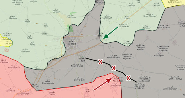 وتتواجد القوات التركية والفصائل السورية المشاركة في عملية درع الفرات حاليا على اطراف الباب من الجهات الشمالية والشرقية والغربية.