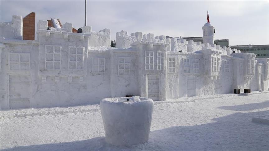 صمّمت كلّية الفنون الجميلة بجامعة “أتاتورك” في مدينة أرضروم، شرقي تركيا، مجسمات ثلجية للعديد من الآثار التاريخية في المدينة تحت عنوان “الشارع الثقافي”، وذلك على هامش المهرجان الشتوي الأولمبي الـ13 لشباب أوروبا الذي انطلق أمس السبت ويستمر حتى 18 من الشهر الجاري.