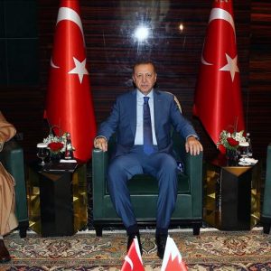 استقبل الرئيس التركي رجب طيب أردوغان اليوم الإثنين رئيس وزراء البحرين الأمير خليفة بن سلمان آل خليفة وولي العهد الأمير سلمان بن حمد آل خليفة، في محل إقامته بالعاصمة المنامة.