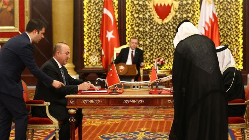 وقعت تركيا والبحرين، يوم الأحد المنعقد ، 3 مذكرات تعاون في المجالات الدبلوماسية، والصناعات الدفاعية، والتعليم.
