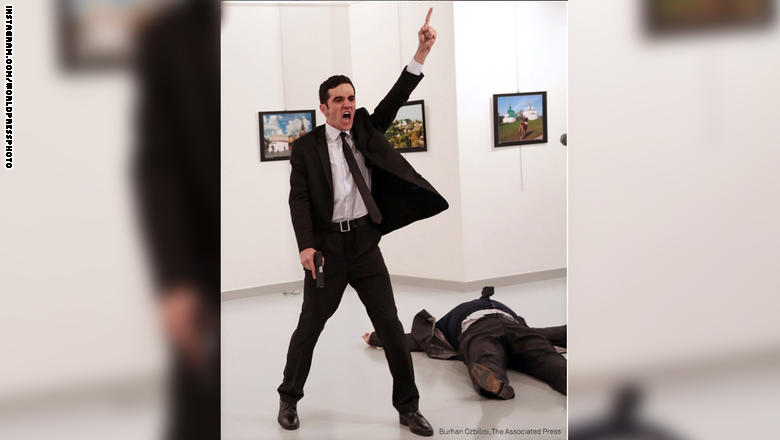 فازت الصورة التي وثقت لحظة اغتيال السفير الروسي في تركيا، أندريه كارلوف، في معرض فني في أنقرة، في ديسمبر/ كانون الأول الماضي، على يد الشرطي التركي الذي كان يبلغ من العمر 22 عاماً، بجائزة صورة العام لـ2017 من مؤسسة “World Press Photo” الدولية.