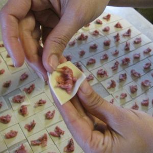 ولدى وصول جميع السيدات المشاركات يقمن بتحضير الحشو وتقطيع العجين وحشي المانتي، ومن ثم وضعه في عبوات ووزنها، وحفظها في الفريزر تمهيدا لبيعها.