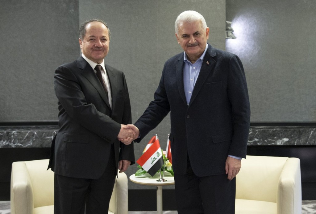 بحث رئيس الوزراء التركي بن علي يلدريم، مع رئيس الإقليم الكردي في العراق مسعود بارزاني، في ميونخ جنوبي ألمانيا، سبل مكافحة الإرهاب.