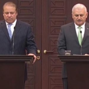 واستقبل يلدريم، اليوم، وسط مراسم رسمية، نظيره الباكستاني نواز شريف، في قصر جانقايا لرئاسة الوزراء التركية في أنقرة.