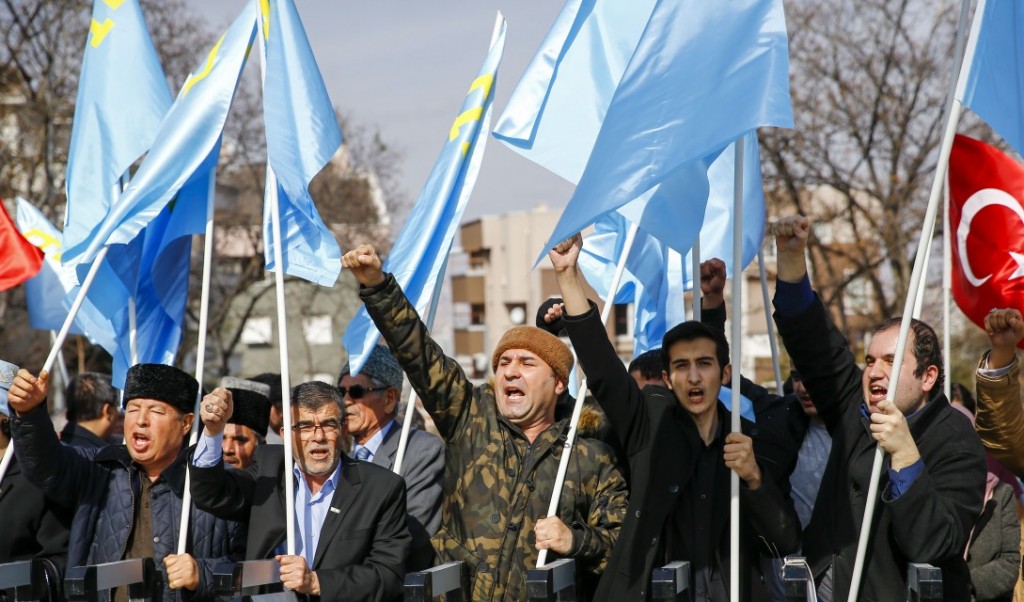 نظّم مواطنون تتار من شبه جزيرة القرم، وقفة احتجاجية أمام السفارة الروسية في العاصمة التركية أنقرة، بمناسبة الذكرى الثالثة لاحتلال موسكو لبلادهم.