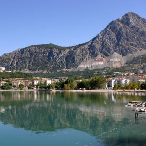 آيردير Eğirdir، الواقعة في شمال أنطاليا، على ضفاف بحيرة تُعرف باسم “بحيرة الألوان السبعة” (وهي البحيرة الرابعة من حيث المساحة في البلاد).