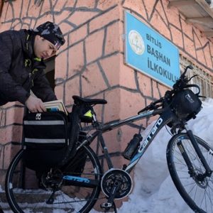يجوب “هاكان يوجل” قرى ولاية بيتليس شرقي تركيا، على دراجته الهوائية حاملا معه كتبا يوزعها على الأطفال، لتعويدهم على القراءة، ونشر الثقافة في الريف.