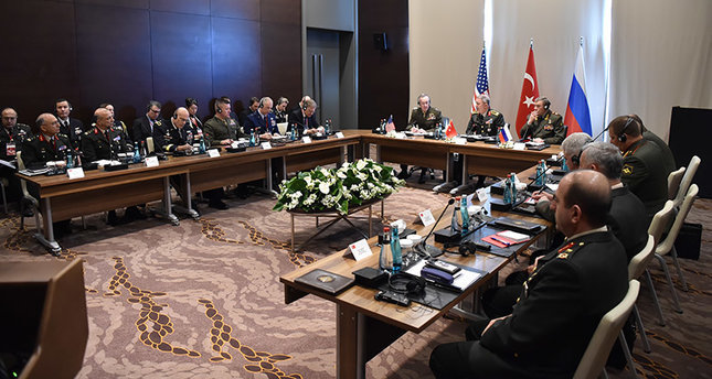 وجاء في بيان صادر عن المجتمعين مساء اليوم الثلاثاء: “رؤساء أركان تركيا وأمريكا وروسيا بحثوا آخر تطورات الوضع بخصوص محاربة جميع التنظيمات الإرهابية في سوريا وتبادلوا الآراء حول المشاكل الأمنية الإقليمية في سوريا والعراق”.