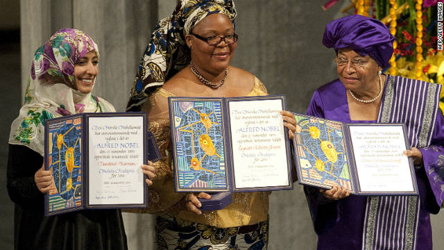 تعد اليمنية توكل كرمان أول امرأة عربية تفوز بجائزة نوبل للسلام عام 2011 بالتقاسم مع الرئيسة الليبيرية “إلين جونسون سيرليف” وناشطة السلام الليبيرية “ليما غبوي” لإسهاماتها في مجال تعزيز دور المرأة في المجتمع.