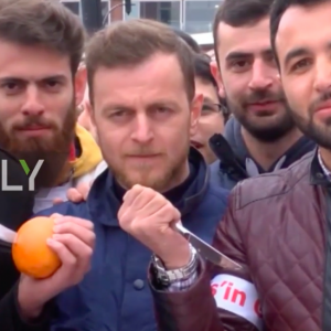 حيث قام المتظاهرون بجلب كميات كبيرة من البرتقال وقاموا بعصرها ثم شربها كتعبير غضب عن الإجراءات الأخيرة للسلطات الهولندية بحق الأتراك.