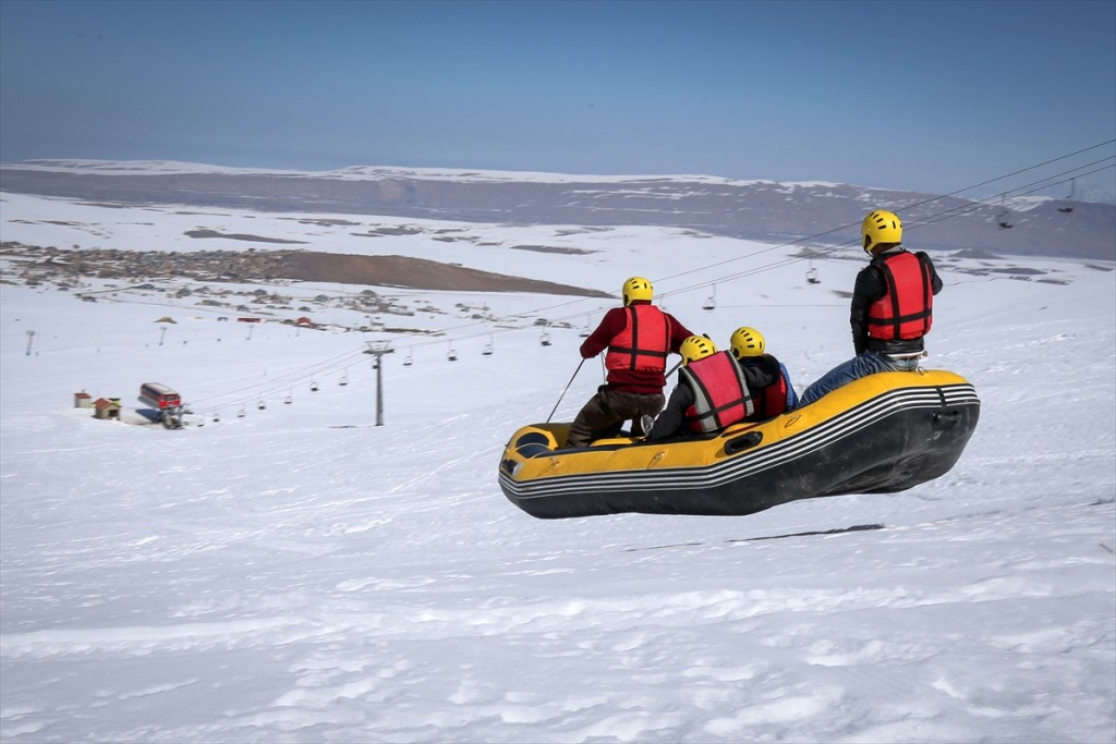 دمج أحد مراكز التزلج في ولاية “وان”، شرقي تركيا، بين رياضة التجديف “الرافتينغ”، التي تمارس في الطقس المعتدل، ورياضة التزلج التي تمارس شتاءً، ليخرج برياضة التجديف على الثلج التي جذبت الرياضيين شيئاً فشيئاً.