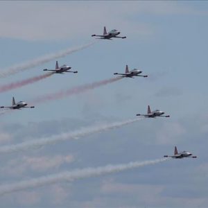 وحلقت الطائرات في سماء مضيق جناق قلعة، ورسمت لوحات فنية في الجو، تخليدا لذكرى الشهداء الذين سطروا ملحمة تاريخية بدمائهم قبل 102 عاما.