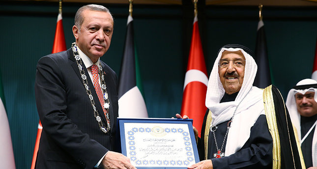 قلّد الرئيس التركي رجب طيب أردوغان، أمير الكويت صباح الأحمد الجابر الصباح، وسام الدولة التركية في مراسم أقيمت بالقصر الرئاسي في العاصمة أنقرة.
