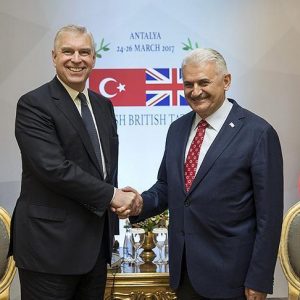التقى رئيس الوزراء التركي بن علي يلدريم، دوق يورك، الأمير آندرو في مدينة أنطاليا جنوب غربي تركيا.