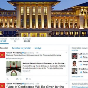 احتل حساب الرئاسة التركية، على موقع “تويتر”، المركز الأول من حيث التفاعل بين الحسابات الرئاسية على مستوى العالم، العام الماضي.