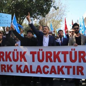 نظم اتحاد جميعات “توركمن إيلي” العراقية، والذراع الشبابي لحزب الوحدة الكبرى التركي، مظاهرة أمام القنصلية العراقية في إسطنبول، احتجاجًا على رفع علم الإقليم الكردي على المباني الرسمية في محافظة كركوك.
