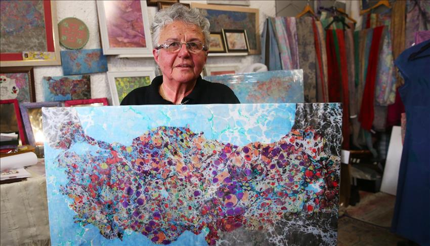 تعد المبتكرة التركية “غولتان جوخدار ” أول شخص يخرج بفكرة رسم خرائط الدول والعالم، بواسطة “فن الإيبرو” أو الرسم على الماء.