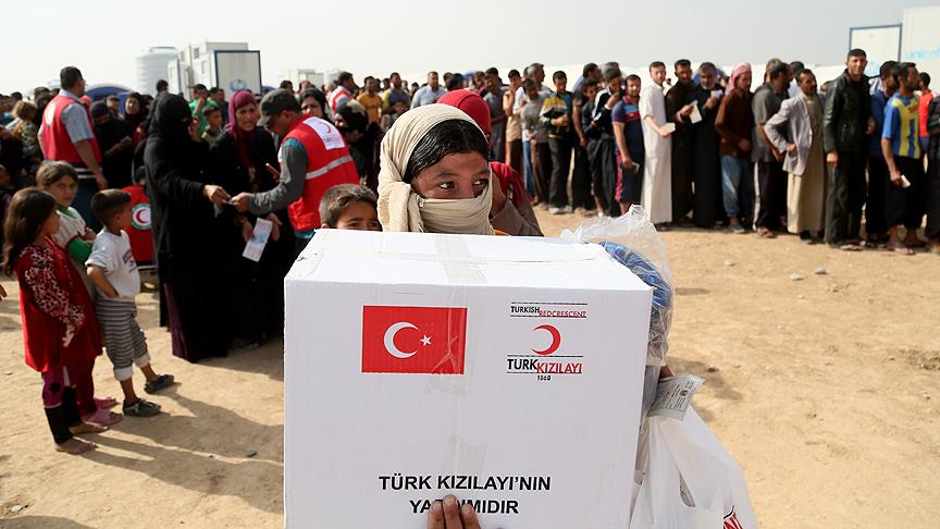 وزعت منظمة الهلال الأحمر التركي، اليوم الخميس، مساعدات غذائية على 1500 عائلة عراقية نزحت من مدينة الموصل (شمال) ومحيطها إلى محافظة كربلاء (وسط).