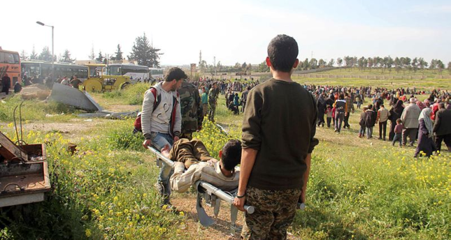يأتي ذلك ضمن اتفاق إخلاء المدن والبلدات الأربعة المذكورة التي تم التوصل إليها في 30 آذار/مارس الماضي بين النظام والمعارضة. ولم تذكر المصادر رقما محددا للقتلى أو الجرحى.