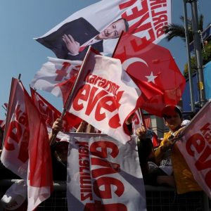 Supporters of Turkish President Tayyip Erdogan wave Turkey's national flags and "Yes" campaign flags during a rally for the upcoming referendum in Istanbul, Turkey, April 15, 2017. REUTERS/Huseyin Aldemir