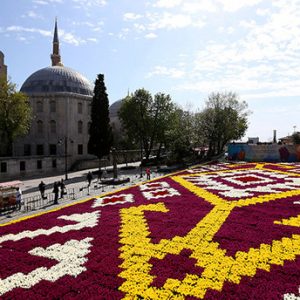 زينت سجادة ضخمة من أزهار التوليب ساحة السلطان أحمد، في إطار مهرجان إسطنبول الثاني عشر للتوليب الذي تقيمه بلدية المدينة للعام الحادي عشر على التوالي. وتتألف سجادة التوليب أو “اللّالَه” كما يطلق عليها بالتركية، من 564 ألف زهرة بألوان مختلفة (نسبة إلى مرور 564 عاماً على فتح إسطنبول)، وتبلغ مساحتها ألفا و728 مترًا مربعًا.